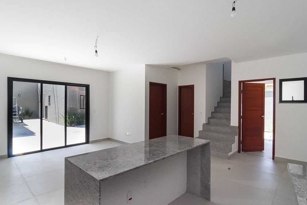 O acabamento é impecável: porcelanato Portobello, escadas em granito, cozinha integrada com ilha e duas vagas de garagem. O condomínio é compacto e moderno, já preparado para carregadores de carros elétricos.